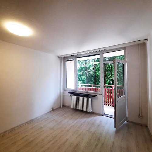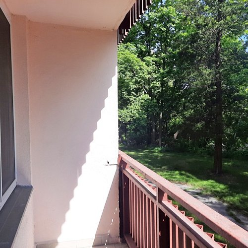 Jednou z největších předností tohoto bytu je balkon s výhledem do zeleně, kde si můžete vychutnat ranní kávu nebo relaxovat po náročném dni. Interiér bytu je světlý a vzdušný, což přispívá k příjemné atmosféře. Vybavení bytu zahrnuje vše potřebné pro pohodlné bydlení, ať už se jedná o kuchyňský kout s dvoplotýnkovým el. vařičem nebo dostatek úložného prostoru. Koupelna se sprchovým koutem má vkusně podsvícený strop a je lehkou příčkou oddělená od WC.